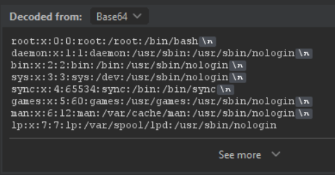 Fuzzing a bit we find that ../ is being filtered out, but ..\ works. We confirm an arbitrary file read vulnerability, which I'll just refer to as a local file include (LFI), and we can read the contents of /etc/passwd using custom_image.php?file=www/web/images/%2e%2e%5c%2e%2e%5c%2e%2e%5c%2e%2e%5cetc%5cpasswd and after decoding the base64 in the response:
